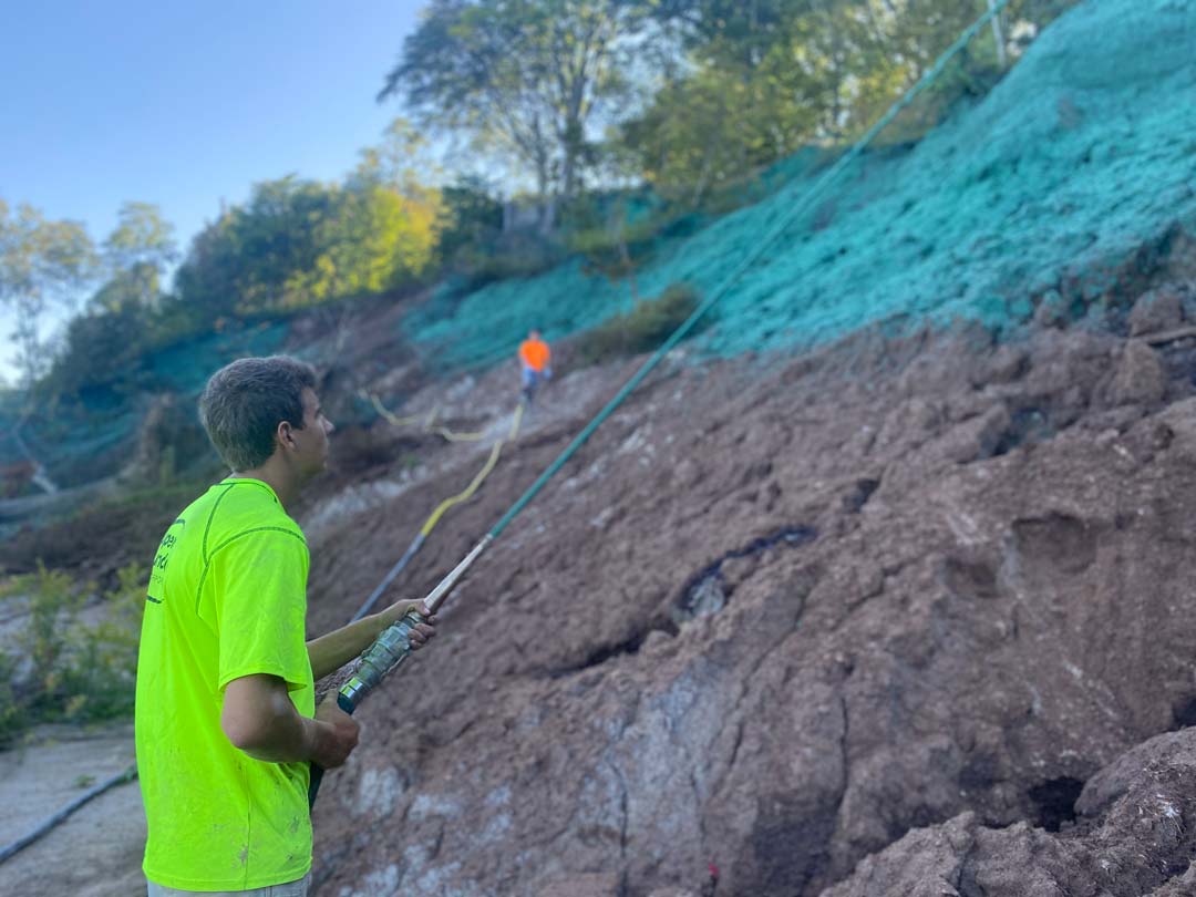 Often, yes—especially where vegetative stabilization is appropriate. Hard walls can be costly and may worsen erosion nearby; hydromulch works with natural processes to hold soil in place. For high-energy shorelines or very steep banks, hydromulch can be paired with other erosion-control measures.